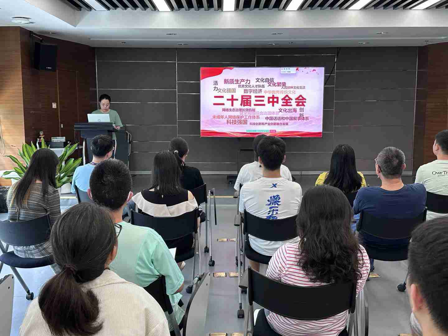 与会人员深入学习《决定》内容。。。。党的二十届三中全会提出必须增强文化自信,,,,发展社会主义先进文化,,弘扬革命文化,,传承中华优秀传统文化,,,,加快适应信息技术迅猛发展新形势,,,构建更有效力的国际传播体系,,这为广大文化产业工作者指明了奋斗方向。。
