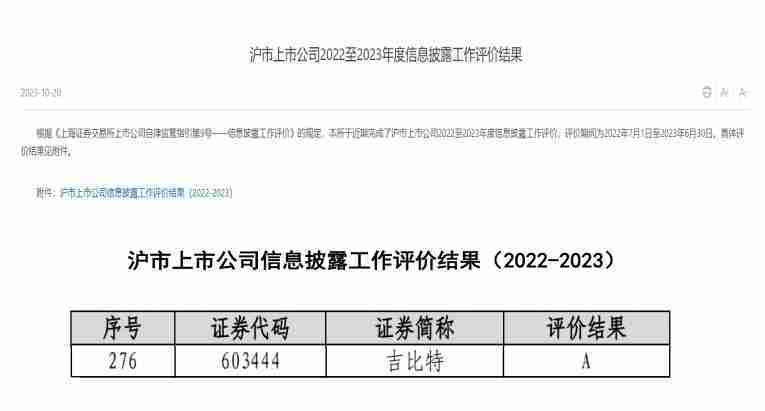 近日,,上海证券交易所(以下简称“上交所”)发布2022-2023年度信息披露工作评价结果。。。亚星管理(股票代码::603444)凭借规范的公司治理、、、、高质量的信息披露以及良好的投资者关系管理再次荣获信息披露工作A级评价,,公司连续两年获此殊荣。。。。